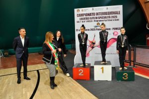Il Sindaco di Pomezia Veronica Felici premia una categoria di ritmica Libertas al Palalavinium rid_