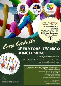 Si terrà martedì 4 novembre, presso la biblioteca Comunale “AmicoLibro” di Montesarchio, la presentazione del Corso gratuito per Operatore Tecnico Inclusivo, un’iniziativa promossa da Libertas Benevento in collaborazione con il Comune di Montesarchio e l’associazione Cambiamenti APS.