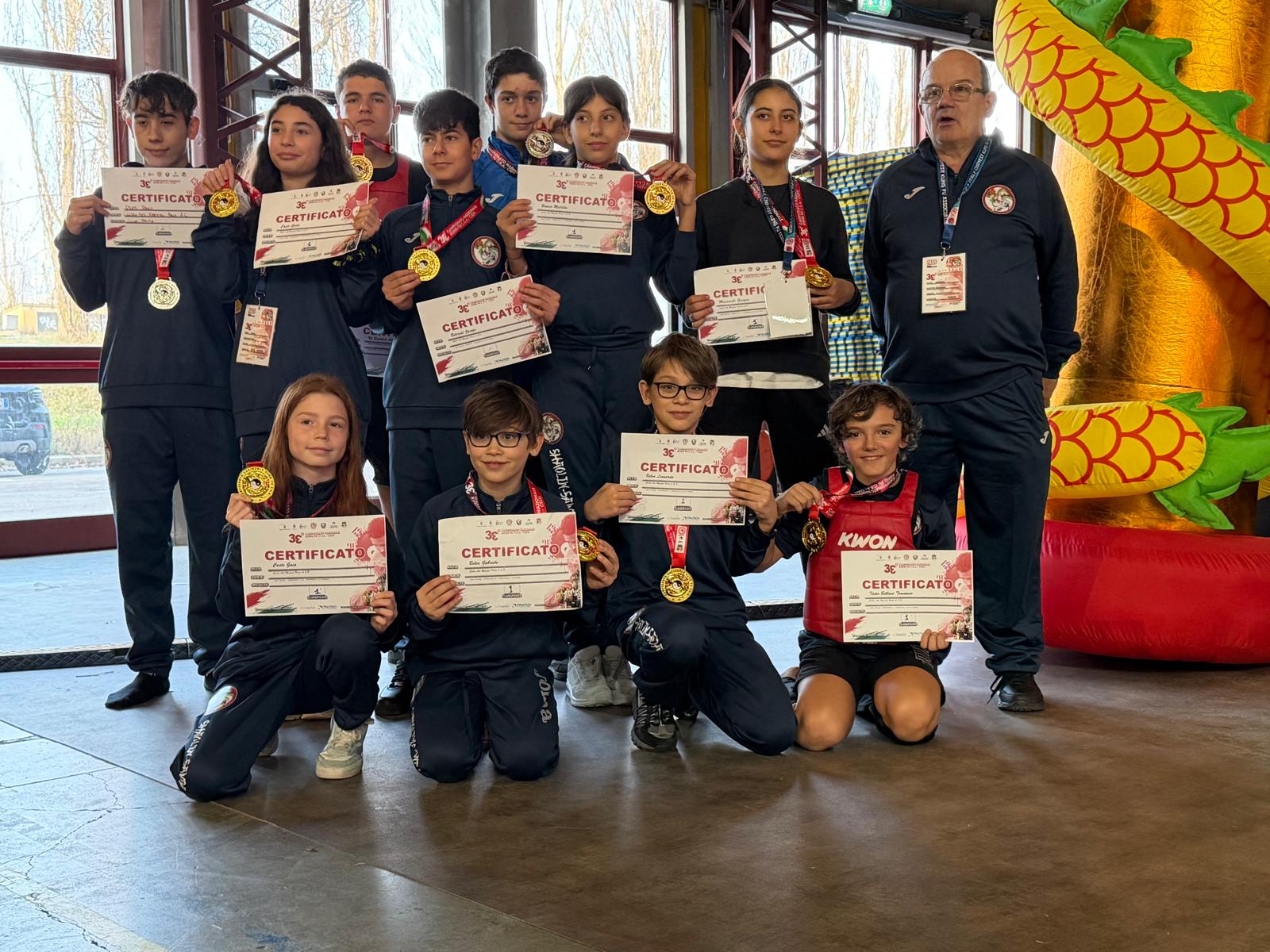 Nel recente campionato italiano CKA tenutosi a Perugia, nel settore sanda, diversi atleti si sono distinti, conquistando il gradino più alto del podio. Tra i vincitori troviamo:Tommaso Tateo Bellani, Gaia e Greta ,Casto, Matilde Bianco, Jacopo Belcredi, Adam Nid Bennetleb, Gabriele Bleve, Leonardo Massocchi e Giorgia. Questi atleti hanno dimostrato grande impegno e determinazione, portando a casa prestigiosi successi. Inoltre, tra i vicecampioni italiani, sempre nel settore sanda, troviamo, Simone Cavova e Paolo Preti Paolo. Nel settore Tai Chi, invece, è stato conquistato un argento da Davide Bianco Davide. I ragazzi stanno ora intensamente preparando per la competizione di K1, che si terrà a febbraio a Torino. Dopo la trasferta in Piemonte saranno impegnati in altre importanti gare che si svolgeranno ad Atene e a Roma. Questi eventi rappresentano ulteriori opportunità per mostrare il loro talento e continuare a eccellere nel panorama delle arti marziali.