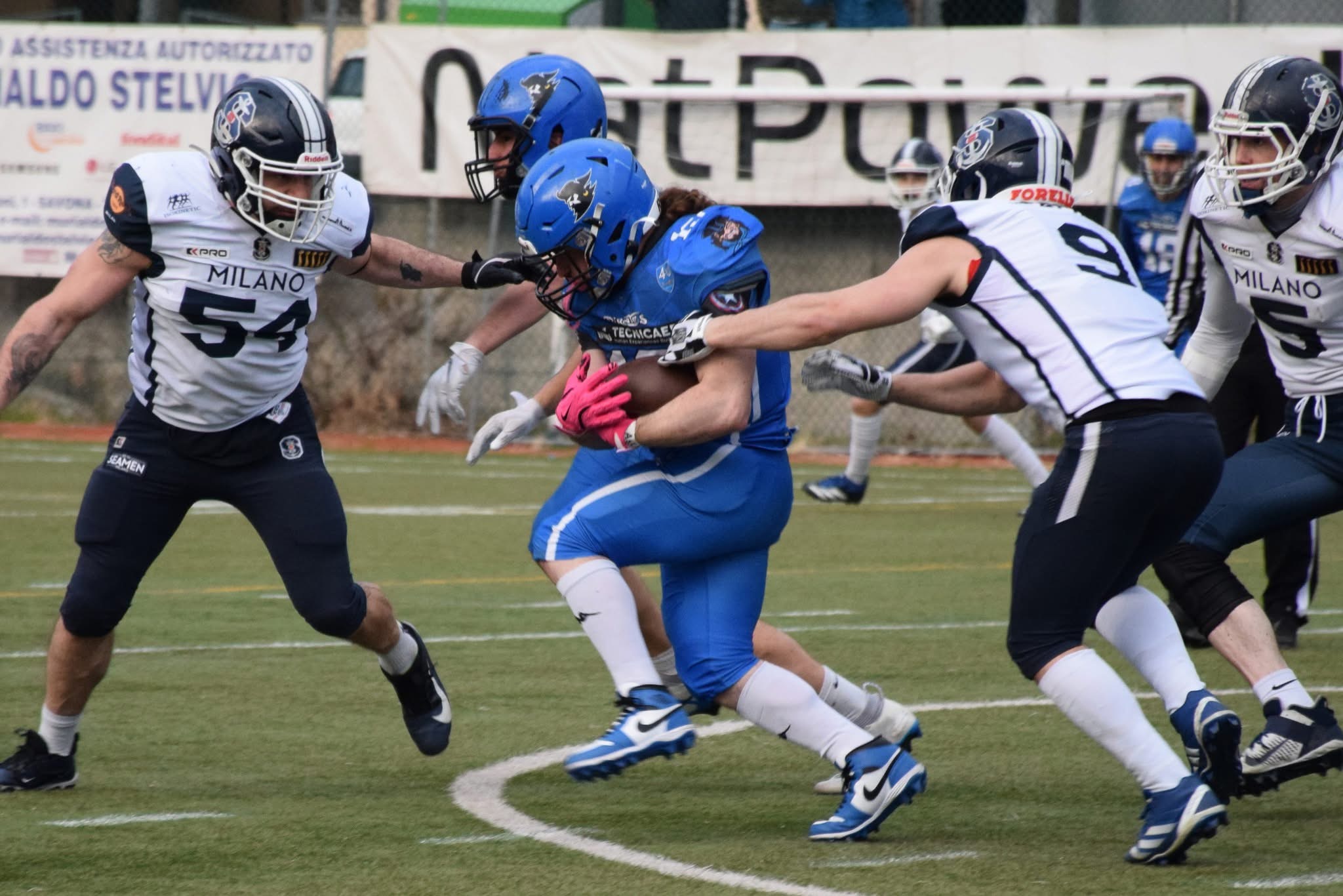 L’attacco dei Pirates resta il nodo irrisolto. Sterile, prevedibile, troppo legato a un gioco aereo che non trova continuità né precisione. I due intercetti pesano, soprattutto il secondo rocambolesco, nato da una deviazione della linea difensiva milanese. Ma al di là degli episodi è la mancanza di ritmo e di equilibrio a preoccupare: l’assenza di un gioco di corsa credibile accorcia i drive, costringe la difesa a turni massacranti e finisce per presentare il conto nel quarto periodo.